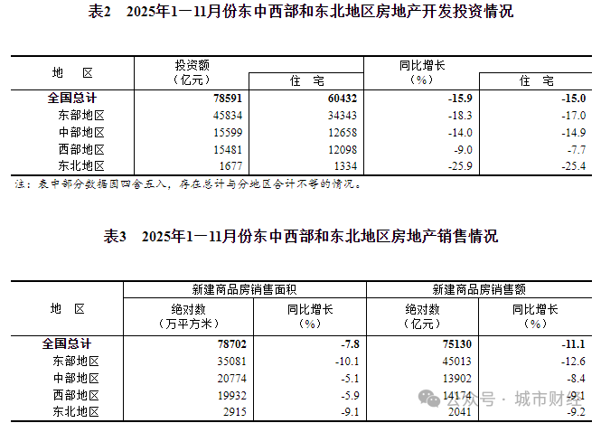 比拟于2021年的高点,分大区域来看,履历了本年的大调整后,不存正在了。全国商品房发卖面积和发卖额同样是正在2021年见顶,